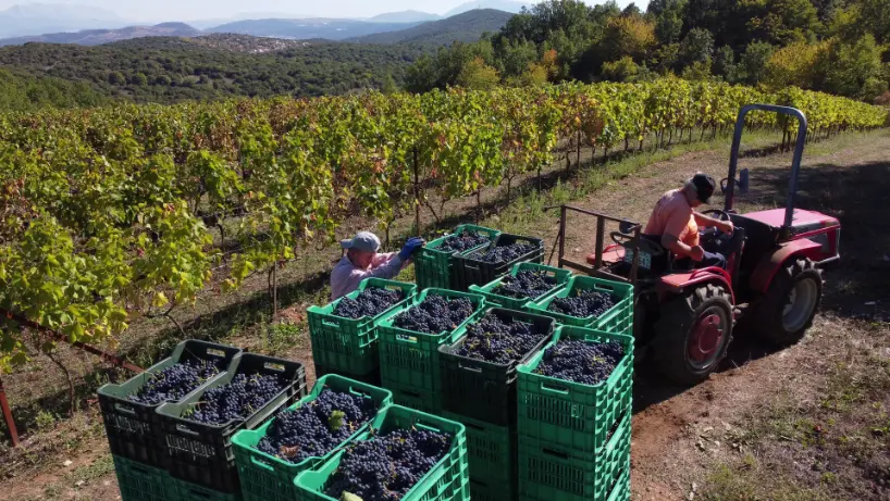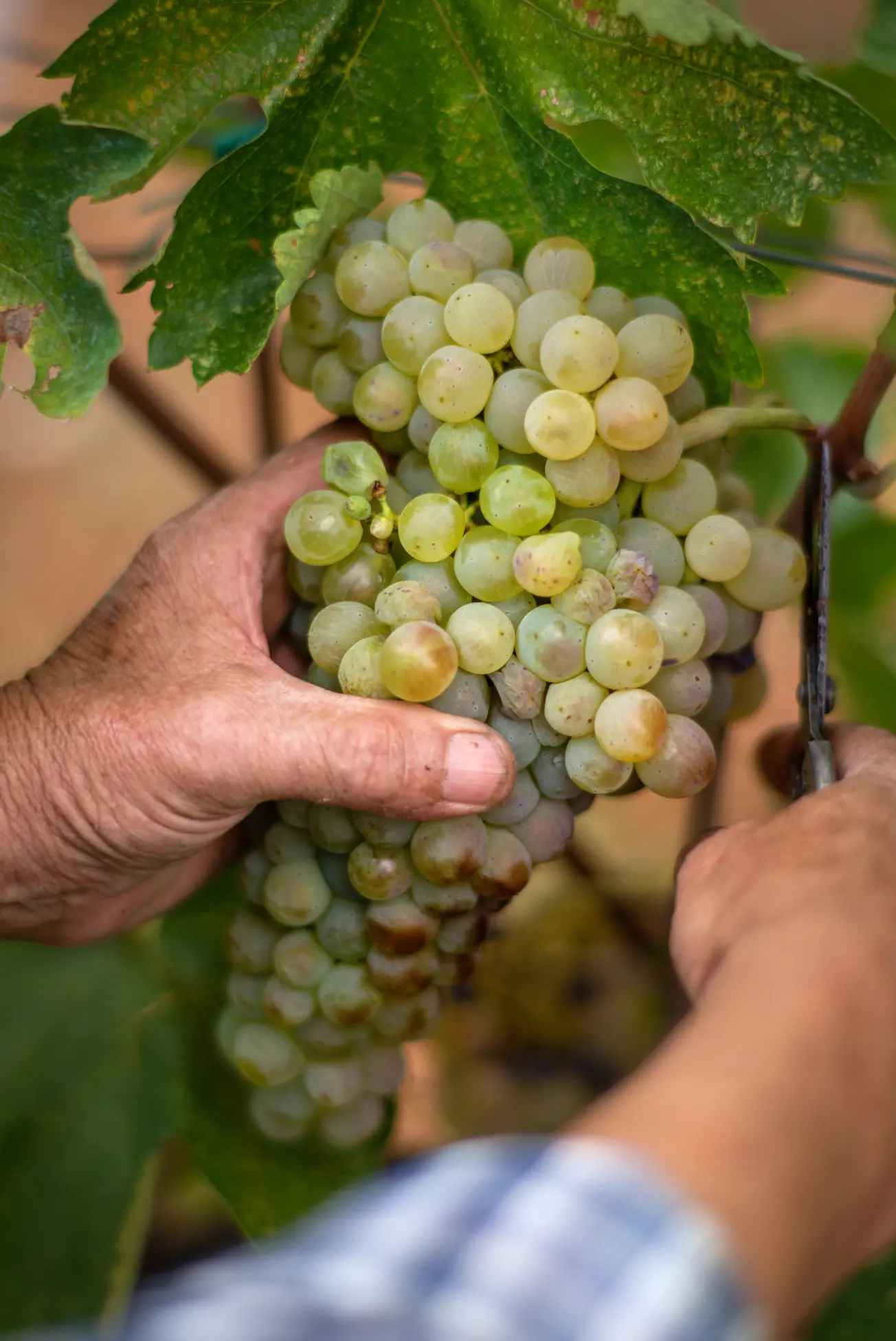 Οι περισσότερες δουλειές στο αμπέλι γίνονται με το χέρι -από το κλάδεμα και τη διαχείριση του φυλλώματος, μέχρι τον τρύγο. Οι αποδόσεις μένουν σκόπιμα χαμηλές, η φροντίδα είναι προσωπική και ακριβής.